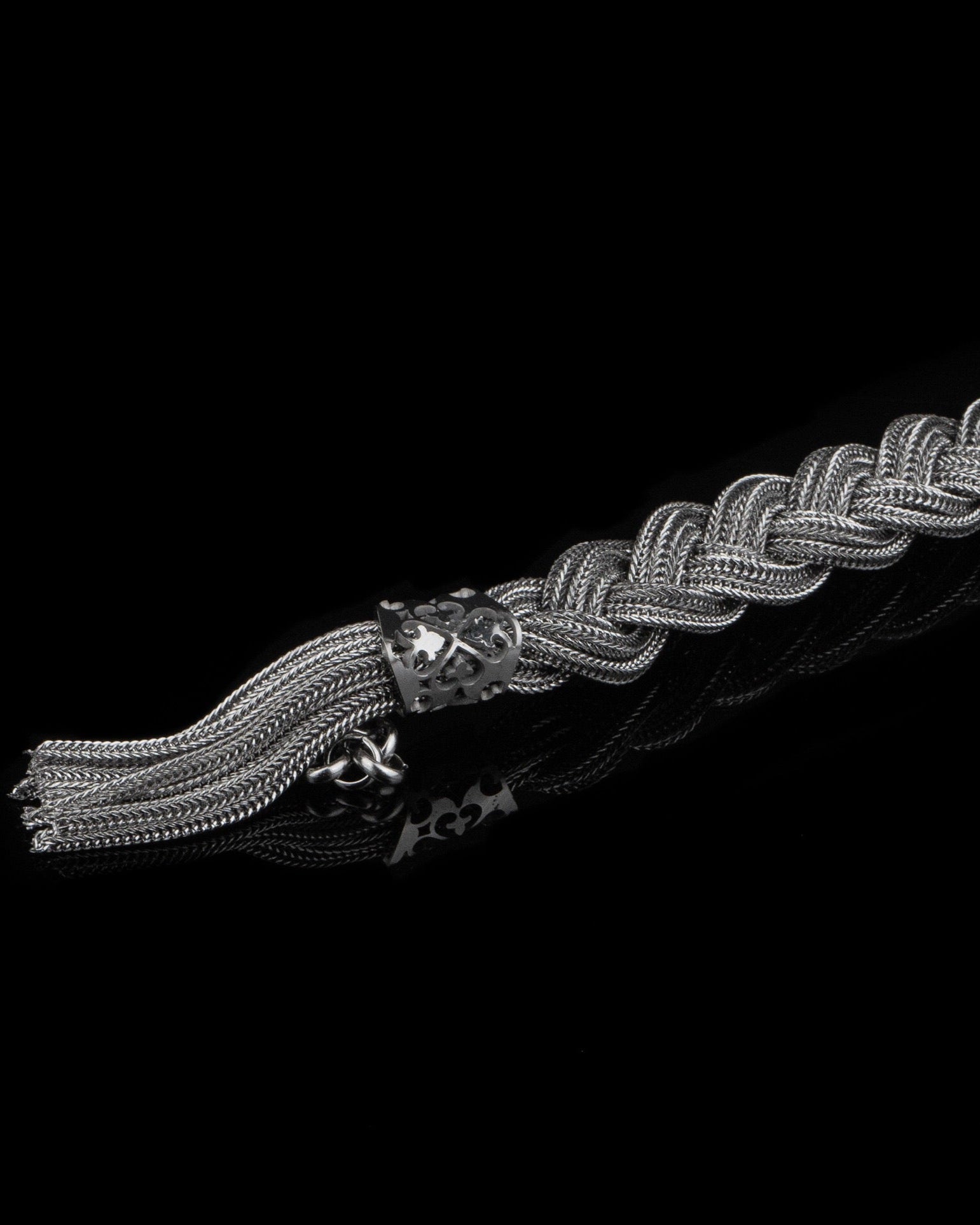 Composto da fili "fox chain" incastonati in una chiusura moschettone con regolazione.