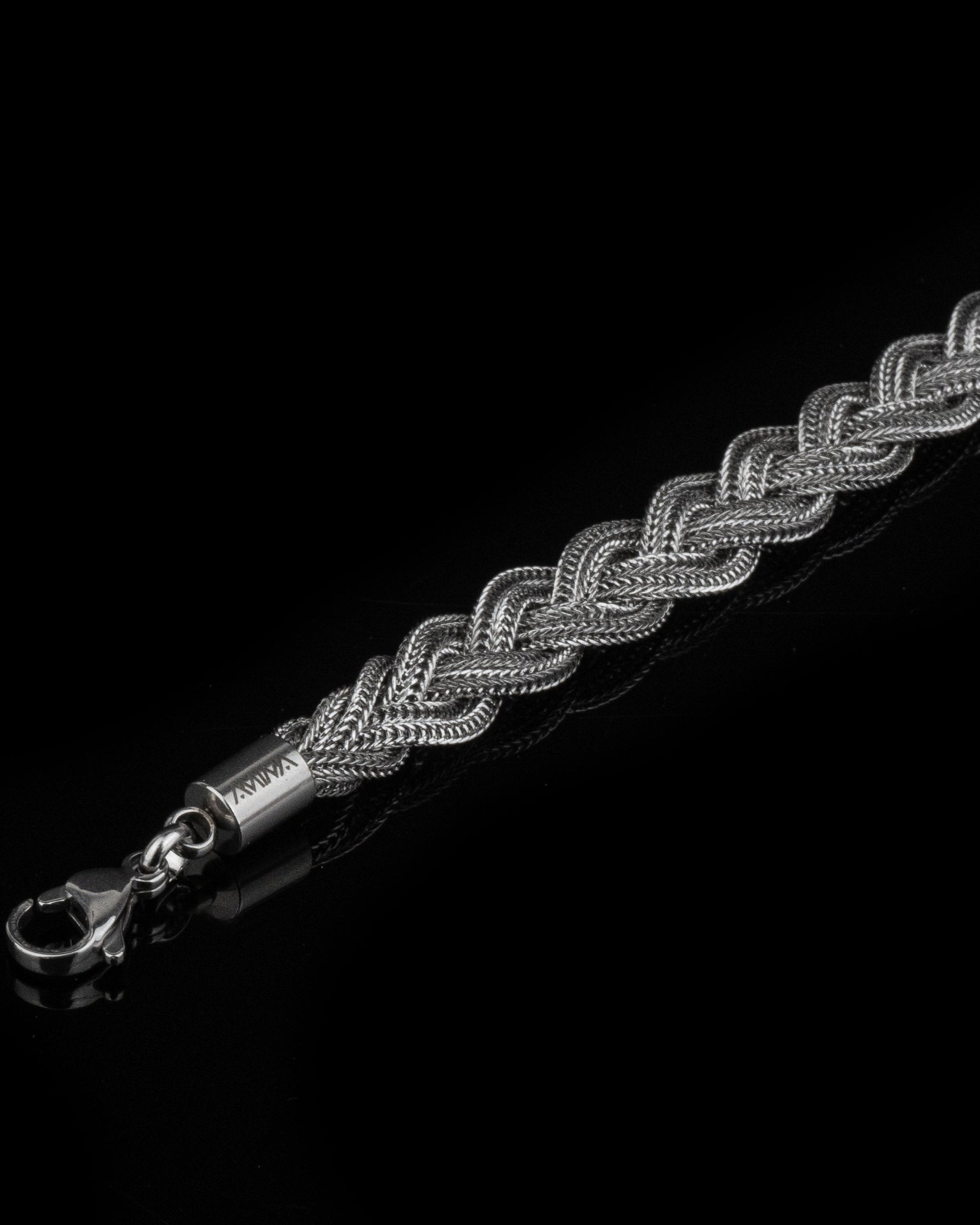 Composto da 6 fili "fox chain" incastonati in una chiusura moschettone con regolazione.